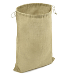 Natural jute. Cotton drawcord closure. Tear out label. Capacity 40 litres.